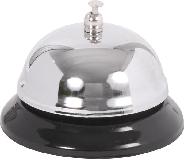 Звънец с ясен звук, който веднага ще привлече вниманието. Материал: хромиран / лакиран метал Размери: диам. 8 x 6 см