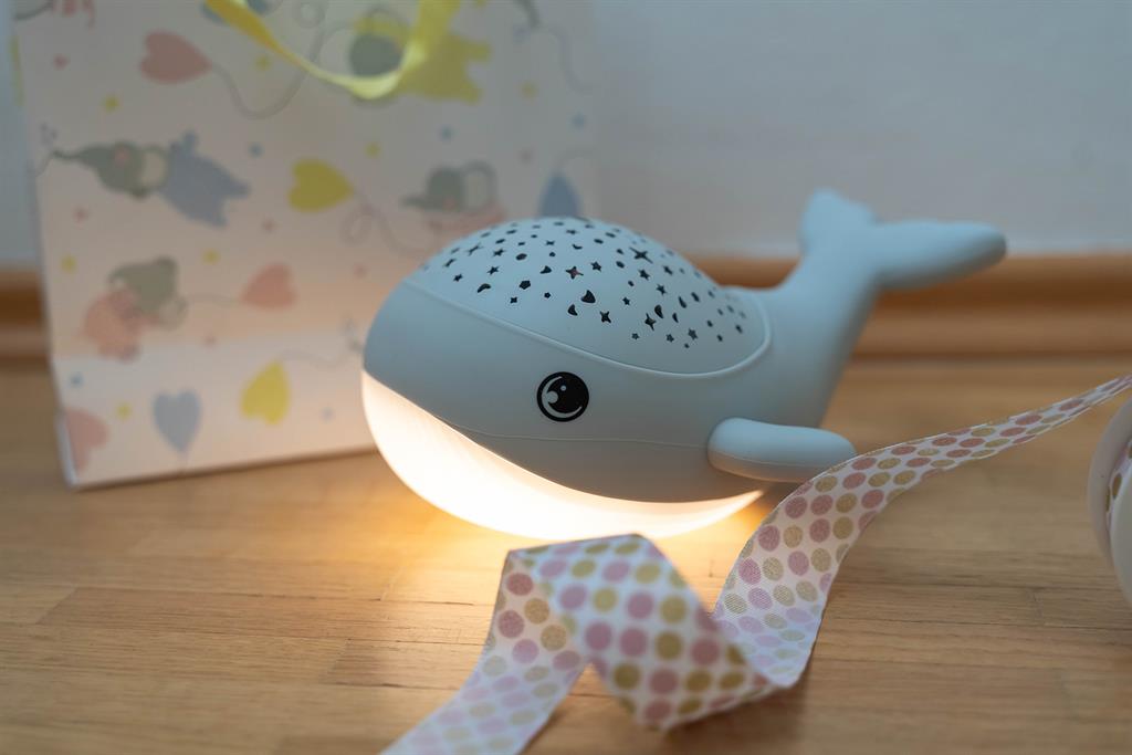 Подарете на детето си вълшебен ритуал преди сън с тази чаровна звездна лампа и проектор в едно! WILLY WHALE – китът мечтател съчетава успокояваща нощна светлина и магически звезден проектор, който превръща детската стая в блещукащо звездно небе.