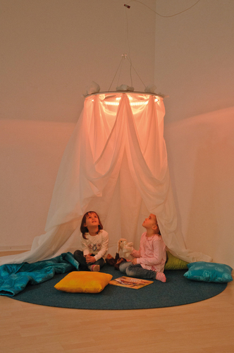 „Звездно небе“ е много повече от светещ панел. Когато децата лежат под звездното небе, те виждат една вълнуваща и изцяло нова перспектива. Редуващите се цветове променят атмосферата в стаята. Балдахинът може да бъде направен според индивидуалните нужди и предпочитания. Освен текстил на панела могат да бъдат закачени различни предмети, любими играчки, цветни шалове и др. С цел безопасност, пластмасовите закачалки са проектирани така, че да се откачват при оказан натиск върху тях.