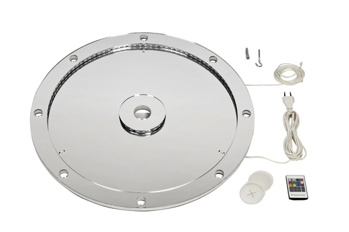Светещ панел за таван с акрилно огледало и LED технология, окачване и 6 м кабел, 10 пластмасови закачалки за балдахин или друга декорация, 1 дистанционно управление, 1 кука за закачване на тавана с дюбел. Размери: Ø 65 см х 2 смТехнически параметри: 30 W, 12 V