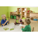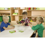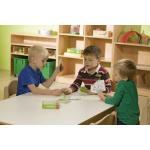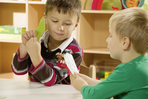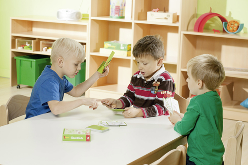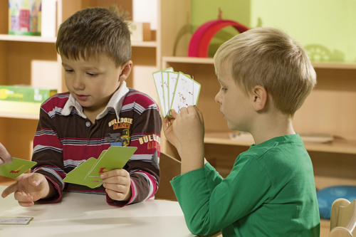 Игра с карти на тема Животни. Целта на играчите е да се освободят възможно най-бързо от картите, които държат в ръцете си. На картите са нарисувани животни – крава, овца, магаре, петел – в различни големини. Броят на купчинките подсказва каква големина е животното и съответно коя карта може да се изхвърли. Чрез разпознаването и назоваването на различните пропорции се насърчава развитието на първите математически умения. Когато играчът играе с някоя карта, той трябва да изимитира звука, издаван от нарисуваното на нея животно. По този начин пък се стимулира езиково-говорното му развитие. Победител е играчът, който пръв свърши картите си.