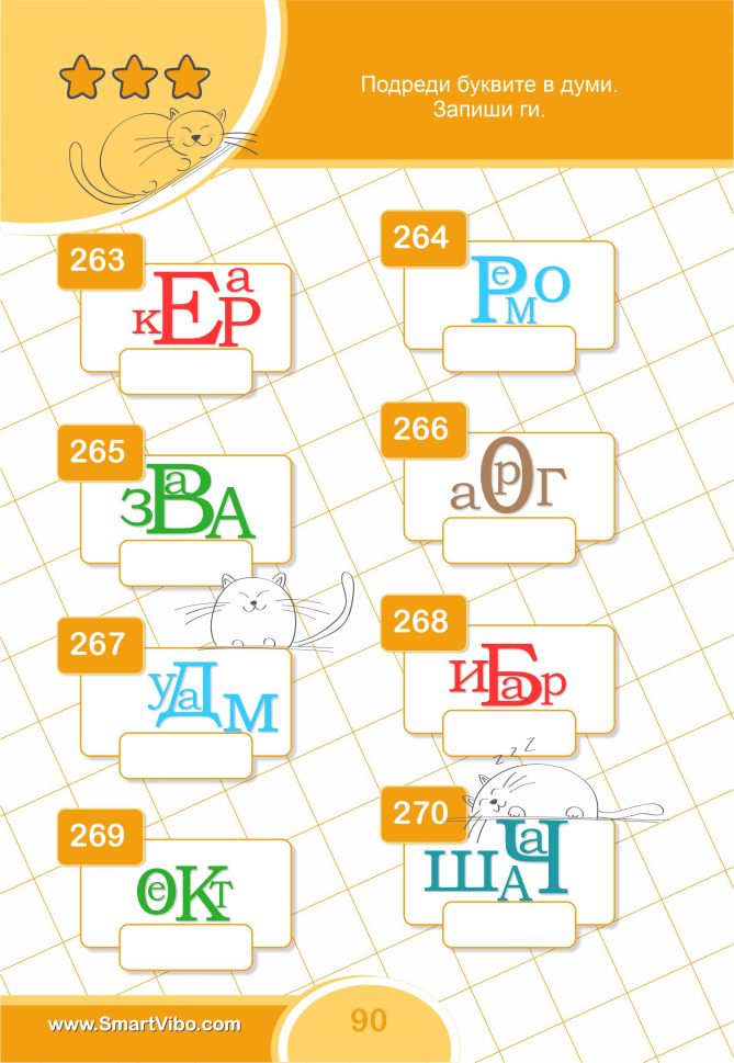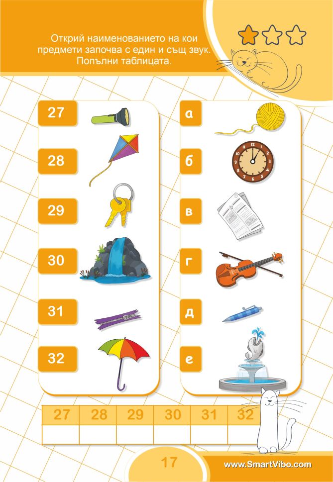 Подходящо за бъдещи и настоящи малки ученици, както и за децата, които се затрудняват с усвояването на писмената реч. Езиковите задачи са подходящи при работа за фонологично осъзнаване и дислексия.