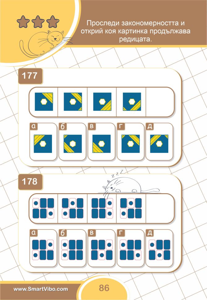 Книжката започва с лична страничка, която детето да попълни и нарисува с любимите си неща. Така книжката става специална и различна – тя е неговата книжка! В края й ще открие сертификат за постижения, който цели да поощри и мотивира добре свършената работа.