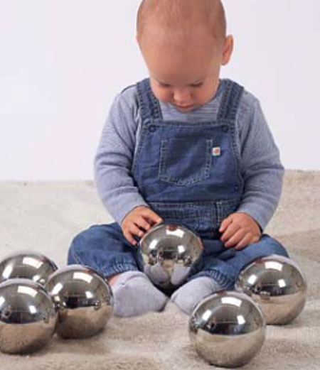 Комплект огледални метални топки, вълнуващи както за очите, така и за ушите. Когато се движат, топките издават различни звуци, а отразените образи се променят.