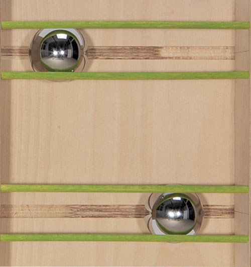 Стенен панел с 2 топки със звукови ефекти. Панелът може да се комбирина с още 2 панела от същата серия и да се поставят в специална рамка. Материали: основа от лакиран брезов шперплат Размери: 30х30 см
